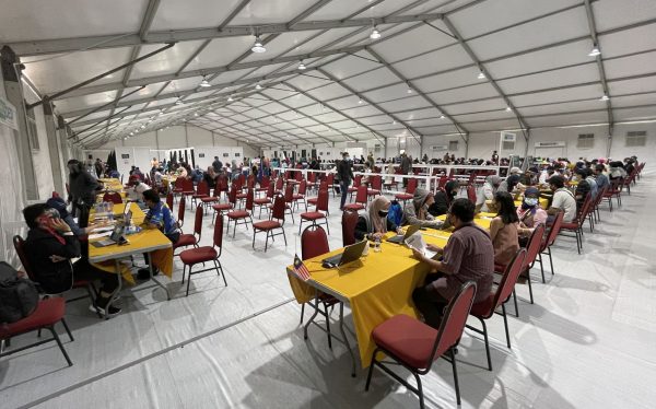 (马六甲5日讯)大量本地市民及外籍劳工今早踊跃到汉遮拔体育馆大型疫苗接种中心,惟大部分人士没有更新MySejahtera状态,工作人员必须逐一指导,导致排队通道“堵车”出现长长人龙,场面或多或少产生混乱,令接种者为安全担忧。