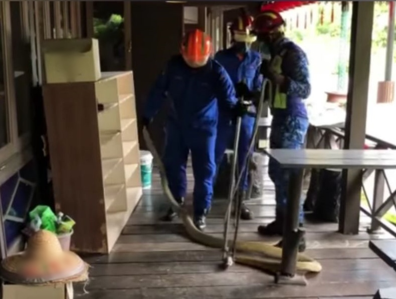 他相信该蛇来自民宿附近的油棕园,出来觅食后匿藏在橱柜后后方。民防部队成员确保一切安全后,于傍晚6时12分收队。