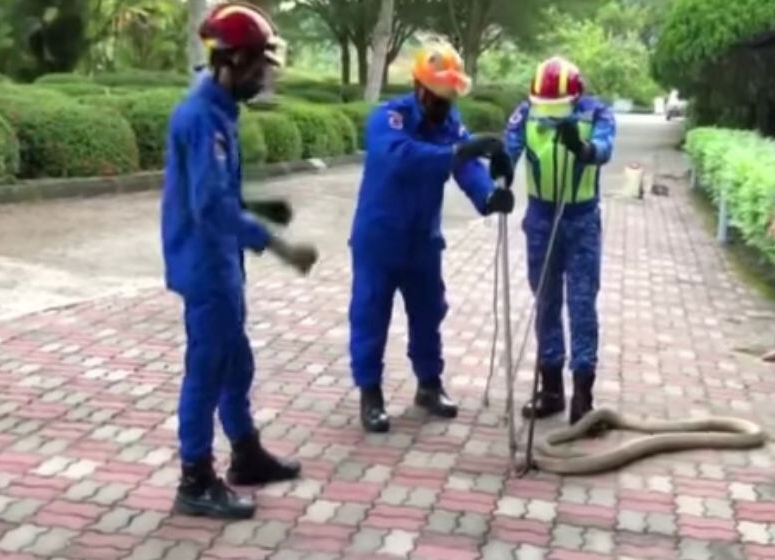 另一方面,民防部队于当晚8时,再接获有蛇藏在沟渠的投报,随后前往现场展开捕蛇行动,成功捕获一条重约4公斤的眼镜蛇王。