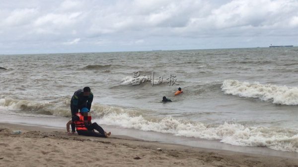 甲民防部队主任库斯伯特表示,甲州民防部队为即将到来的东北季候风做好准备,今日位於公主海滩展开救援水灾灾黎的演习。