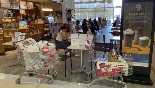 在饮食区域方面,各年龄男女在符合完成接种疫苗的条件下进入享用堂食,体验久违的悠闲用餐时光,也有一些民众在血拼完毕后,坐下喝杯咖啡休息。