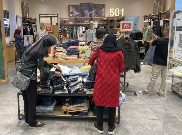《古城》社区报中午走访甲市区购物商场,民众已拎着大包小包战利品,或者推着塞得满满当当物品的购物车,足见这一趟出门消费收获甚多。