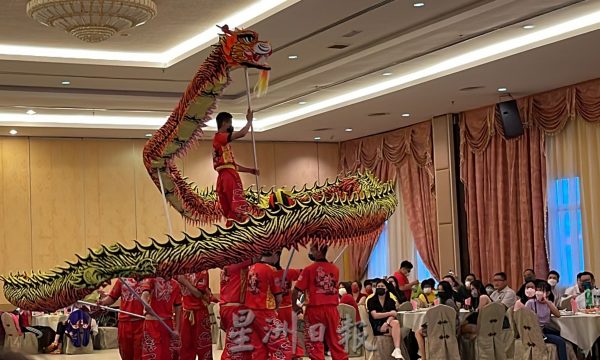 高峰龙狮体育会的壬寅虎年“虎龙”表演,炒热现场气氛。(范纯玮摄)