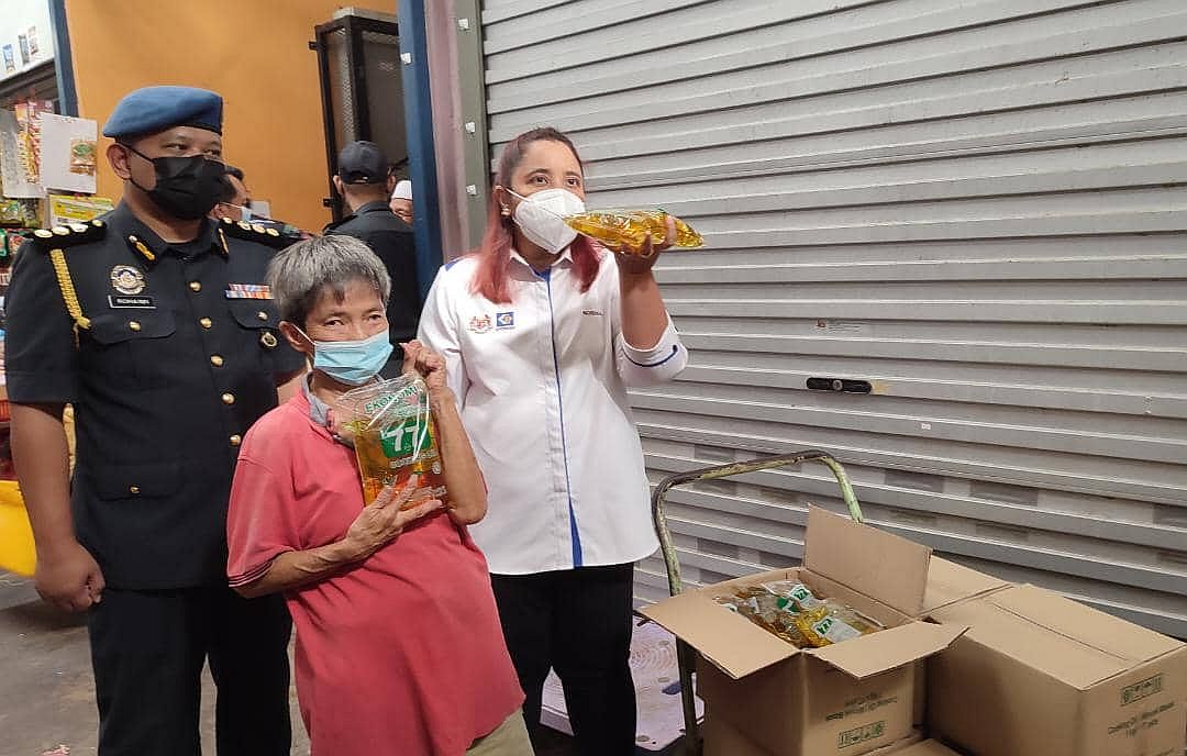 在食油方面,她说,供应商是按各自的时间表送货至零售商店,而消费者每人只准购买两包包装食用油。
