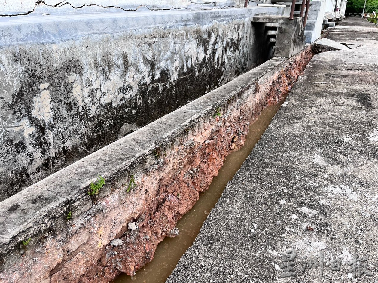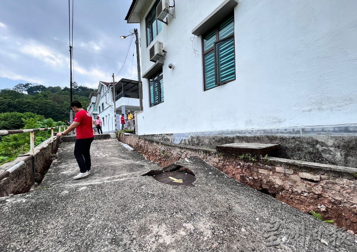 他说,隔天检查时发现后巷路面越陷越深,路面开始坍塌,深怕影响房屋结构。