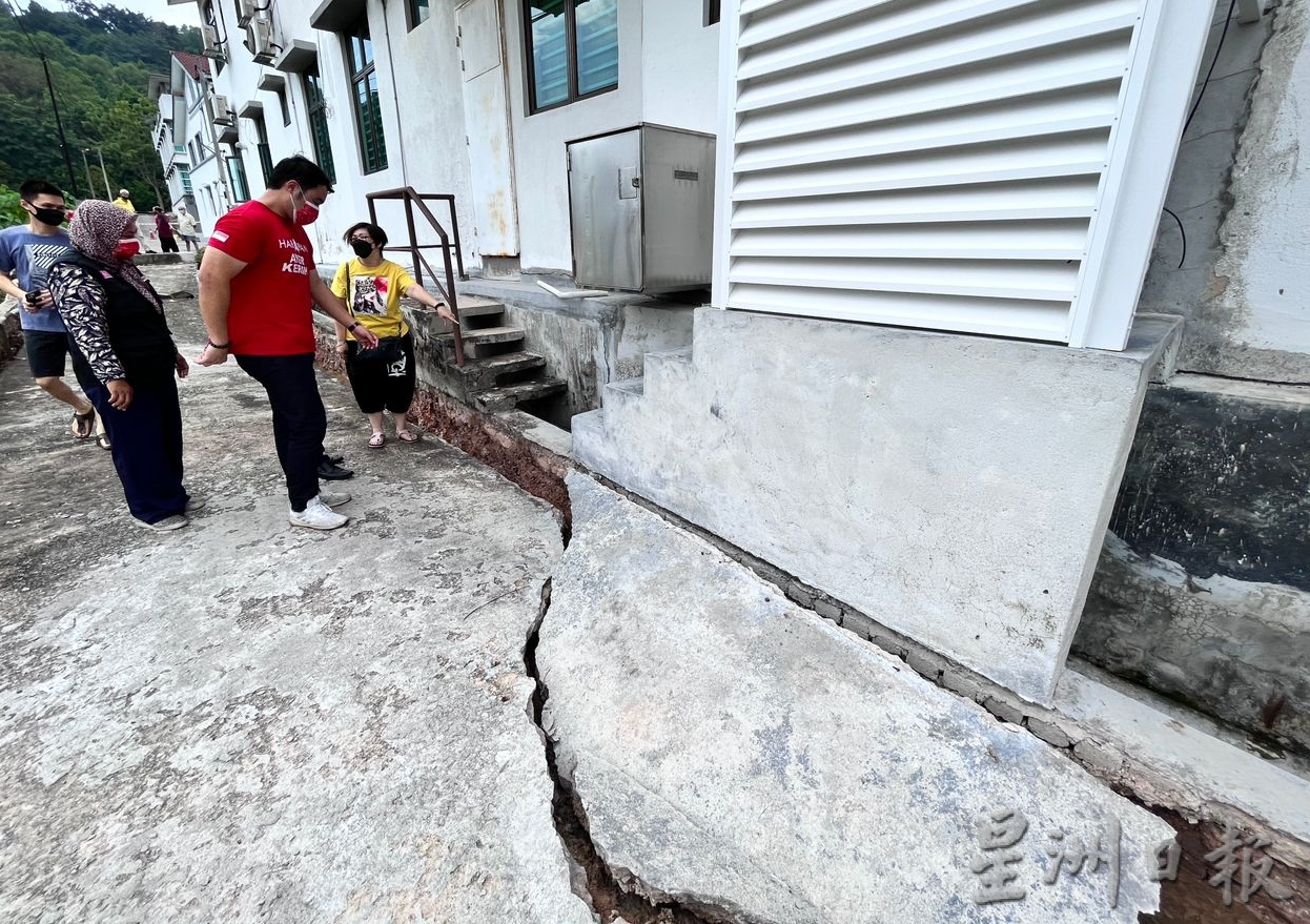 “该花园于12年前建成,居民入住不久后,发现住家一些角落或墙壁龟裂,日子久了,裂痕逐渐加深,日前,住宅区的后巷突然下陷,短短3天已大幅度下沉,令居民感到担忧。”