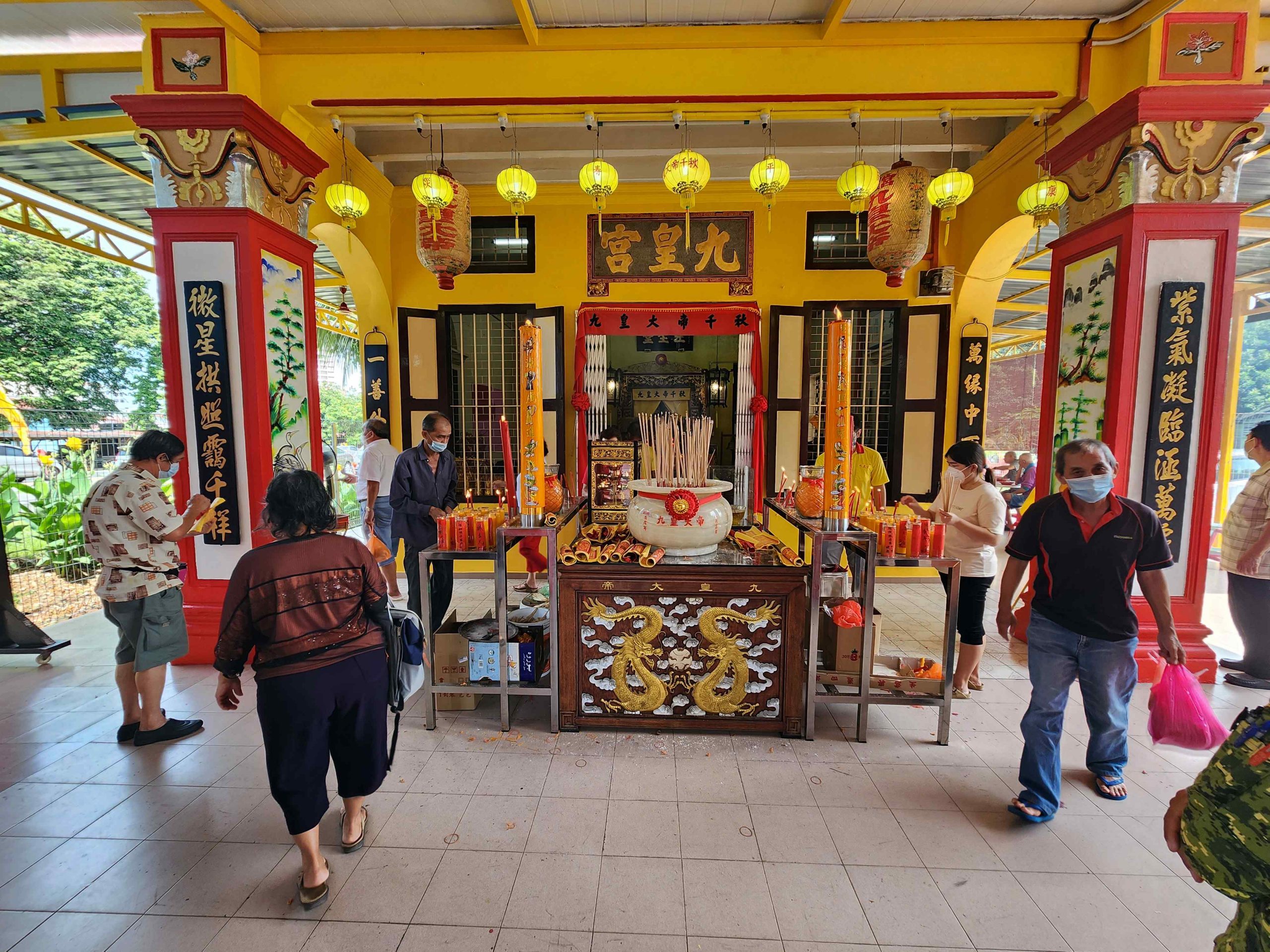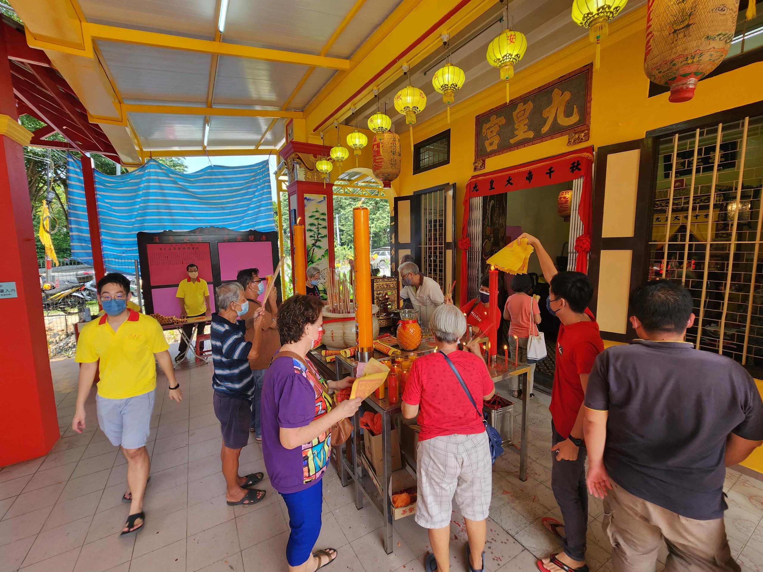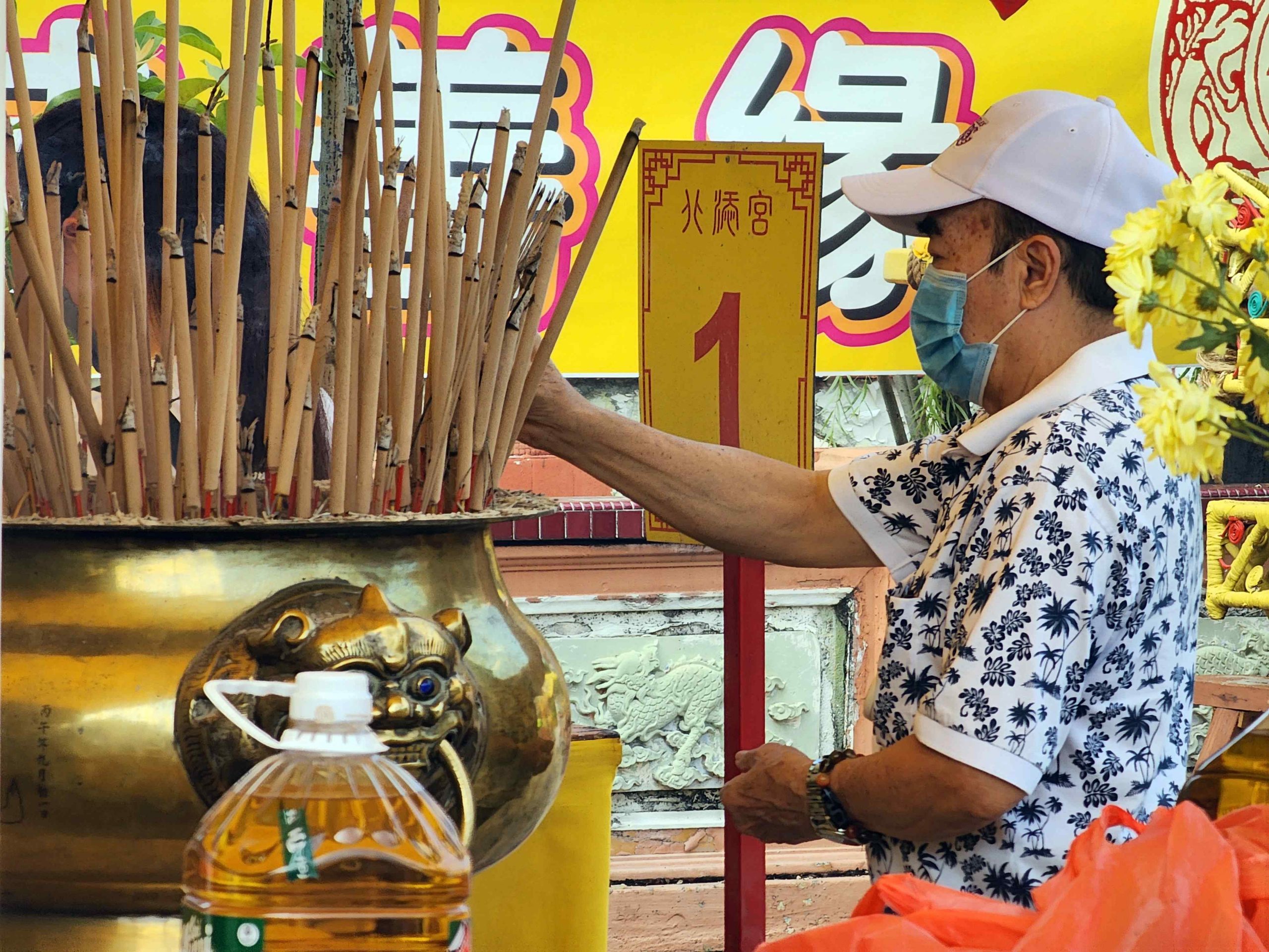 阔别两年全面开放后,善信们在九皇大帝千秋大法会期间前往北添宫敬香。(戴小同摄)