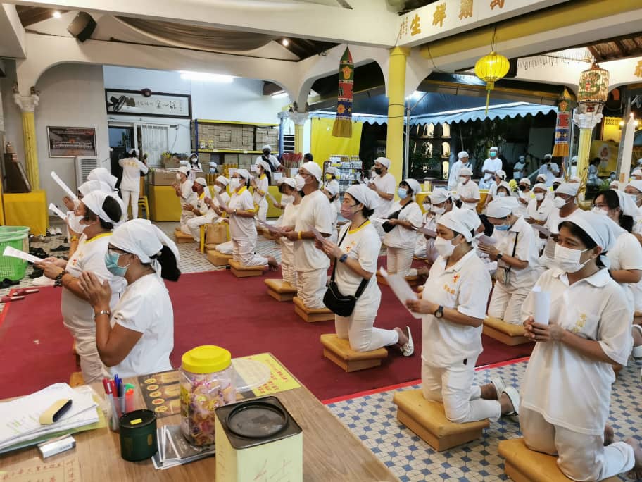 九皇宫在农历八月三十念经,恭请九皇大帝圣驾光临。(九皇宫提供)