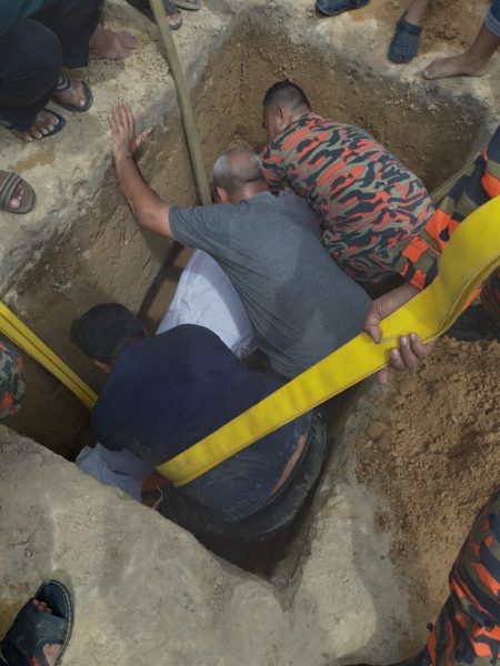 消拯局行动指挥官卡莱指出,消拯员于中午12时06分抵达墓园,并利用消防喉带及脊椎板,耗时约30分钟才把遗体放置墓地内。