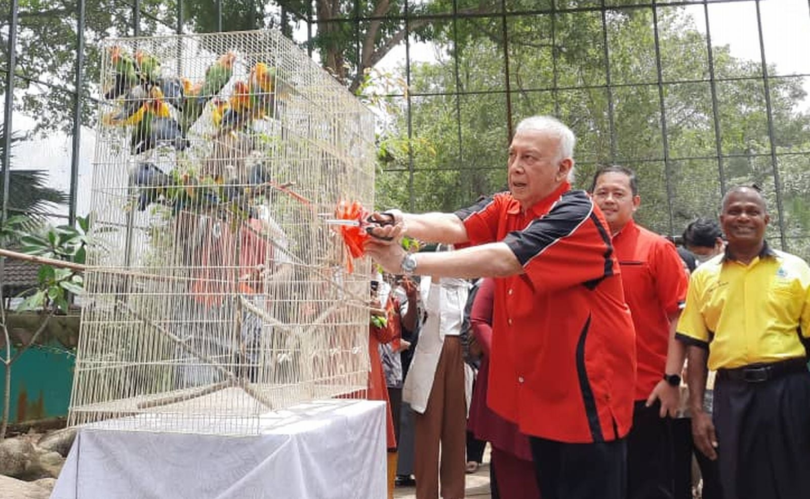 该园今日邀请鳄鱼园集团公司Artac集团执行主席兼马来人经济组织联盟(GABEM)主席丹斯里阿都拉欣淡米仄,今日在飞禽区主持爱情鸟放飞仪式,在场的包括该园经理阿里夫。
