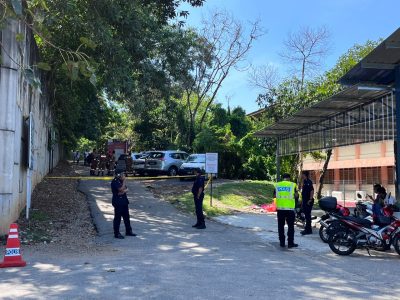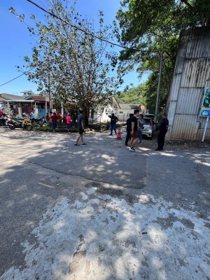 (马六甲18日讯) 熊山山脚下今早聚集围观人潮,警方再度封锁现场,传言失踪者已被寻获,但生死未卜。