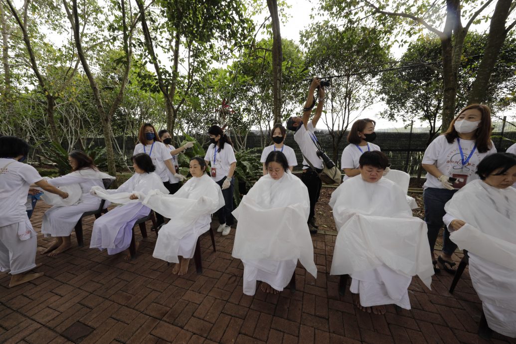 (马六甲23日讯)33名女众于马六甲梵行寺禅林参与“第五届南传女众短期出家体验营”,她们年龄从21岁至81岁,体验清净短期出家沙弥尼生活。