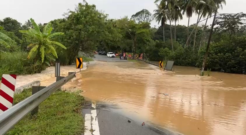 豪雨逾3小时 亚罗牙也河流水位高涨 淹没甘榜格慕斯主要路段