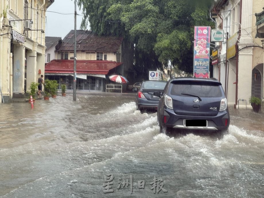 (马六甲3日讯)今早一场大风雨导致市区多处道路路面积水,一些低洼路面水深接近半尺,虽然没有传出严重水患事故,但也造成一些地区交通缓慢。