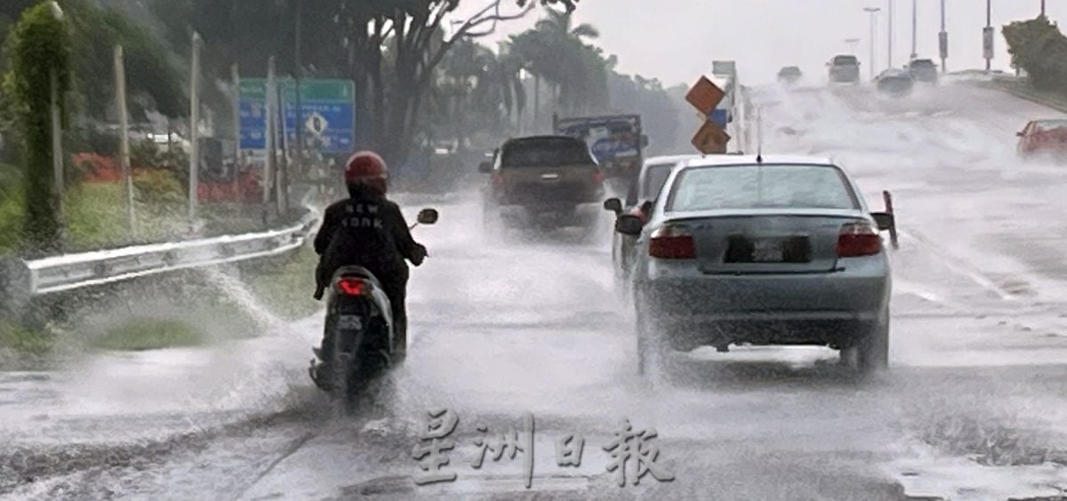 AMJ大道由于车辆多且行驶速度较快,激起的“浪花”也很壮观,对摩托车骑士非常不友好,一旦水的冲击力大有可能将摩托车“冲倒”,而大片水迎头盖下,更会影响骑士视线和平衡,酿成意外。