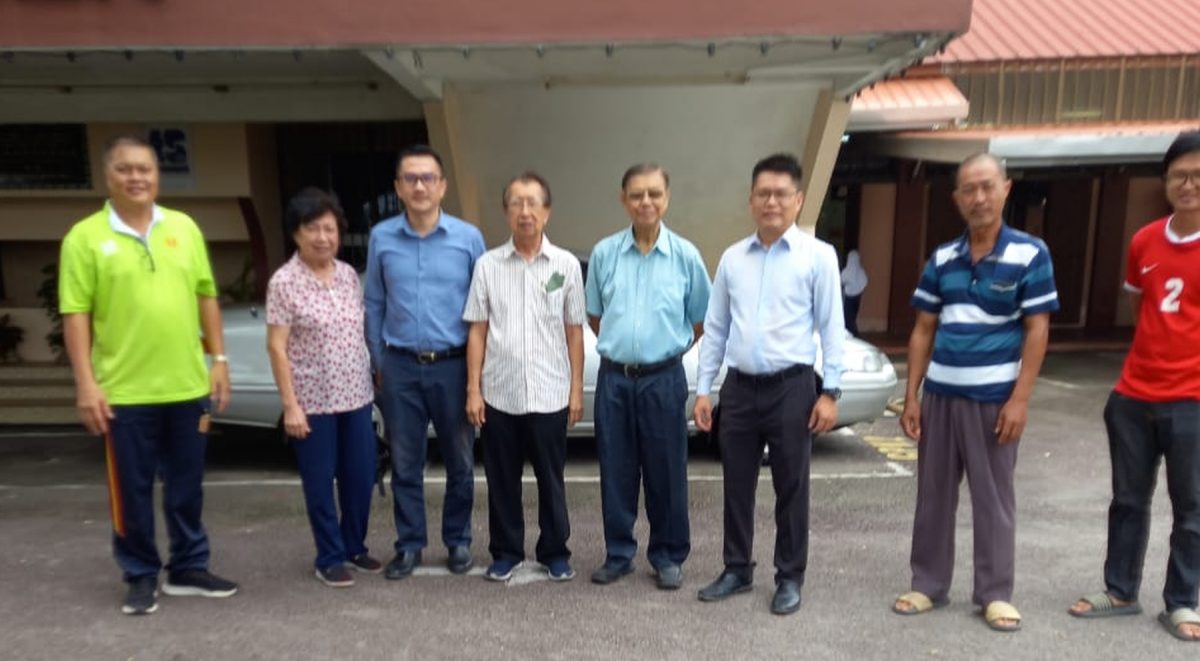 发展商林昌伟(左三)也应邀到育贤学校了解情况。左一起为魏昌华校长、李依株、罗伯庭、吴哲全及萧运棠博士。