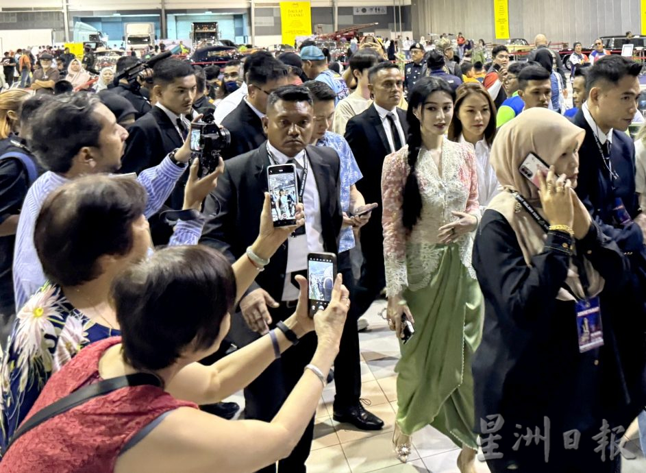 早上11时20分左右,范冰冰在母亲张传美及经纪人团队陪同下抵达国际贸易中心,首站是参观汉都亚展览,第二站是柔佛王室交通工具收藏展。