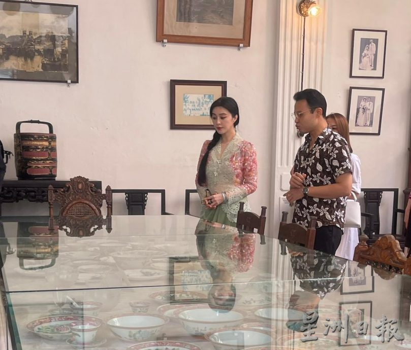 结束约1小时的参观行程后,范冰冰在团队护送下前往荷兰街参观著名的峇峇娘惹博物馆。