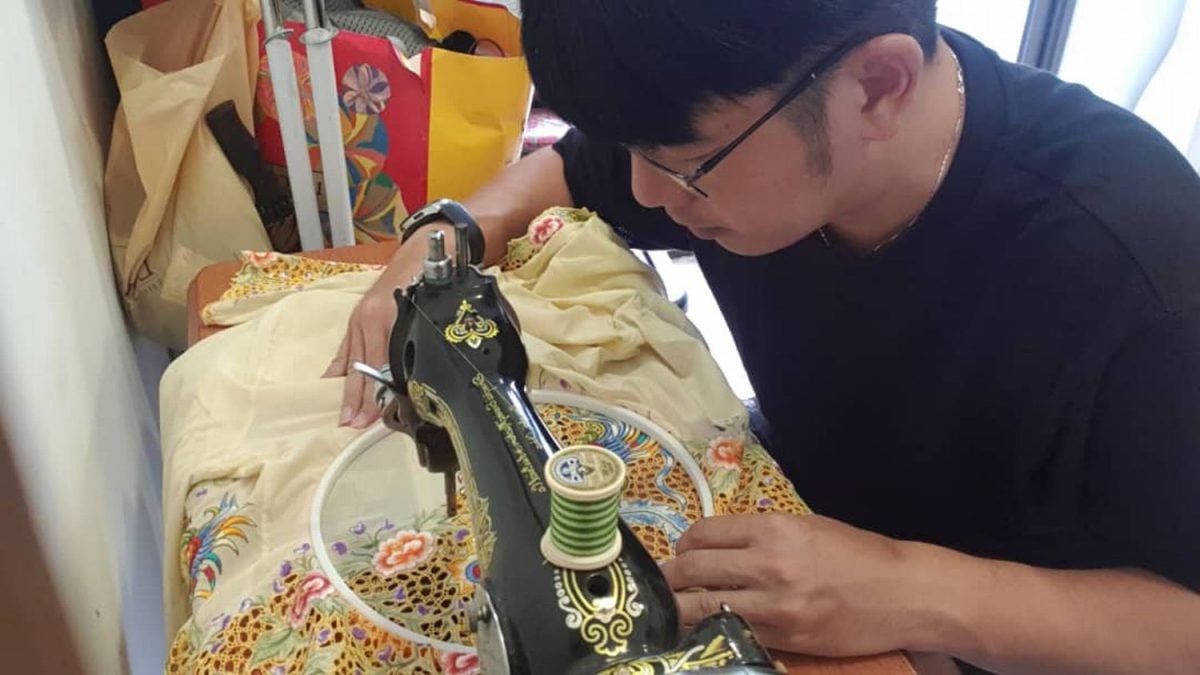 来自槟城的骆胜坚生长于峇峇娘惹家族,从小受传统峇峇娘惹环境熏陶,看着祖母、阿姨、姑姑们手作娘惹服、食物、糕点等传统手作,自己也喜欢及懂得一些手工制作,但真正学习缝纫,是在创业时。