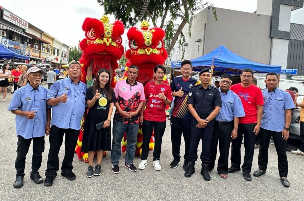 阿当阿里在舞狮陪同下派发月饼给在场的市民,一些市民也主动要求合影留念。