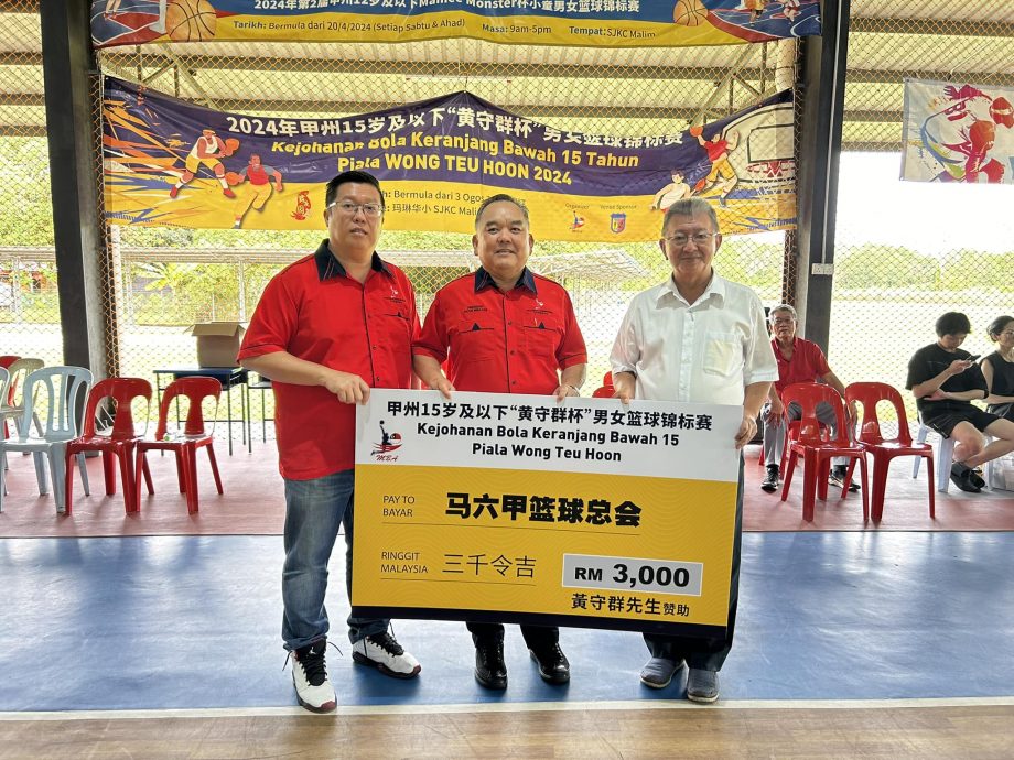 甲篮总会长拿督威拉陈江荣感谢黄守群多年来持续赞助与支持15岁及以下杯赛,并呼吁更多企业及个人能加入甲篮总大家庭,大家有钱出钱有力出力,为提升及发展马六甲篮球运动而努力。出席仪式的尚包括甲篮总秘书长邓永森市议员。