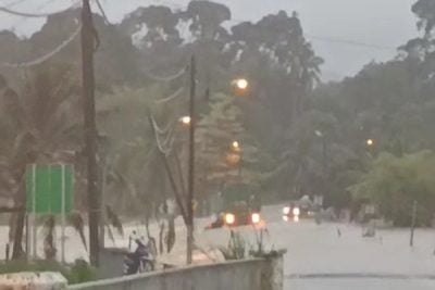(马六甲29日讯)一名摩托车骑士今早途经亚罗牙也罗木支那峇株阿朗路,尾随一辆货车通过积水路段时,曾跌落水中被湍急的水流冲走。所幸及时抓住一根木棍,并最终成功获救。