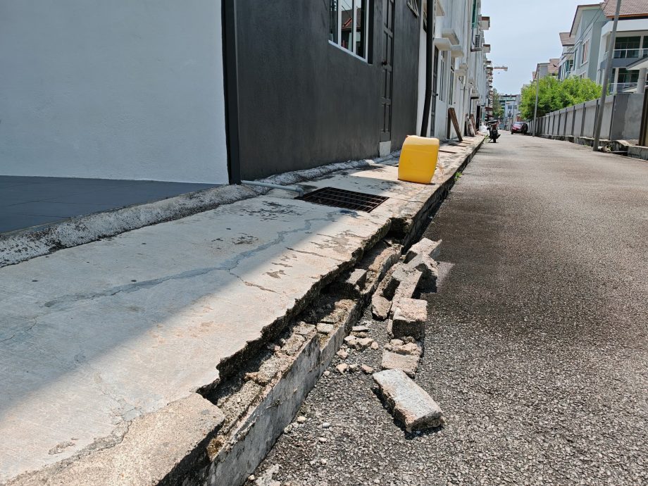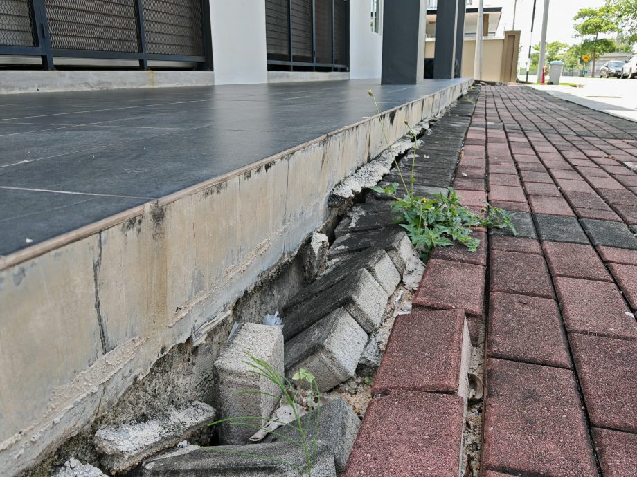 在哥打拉沙马那沙班达、哥打拉沙马那再也等地区的许多店屋前走道,都有裂缝的问题。