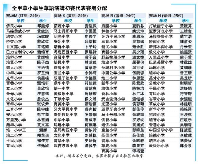 全国华小华语演讲甲初赛 65校97学生26日过招