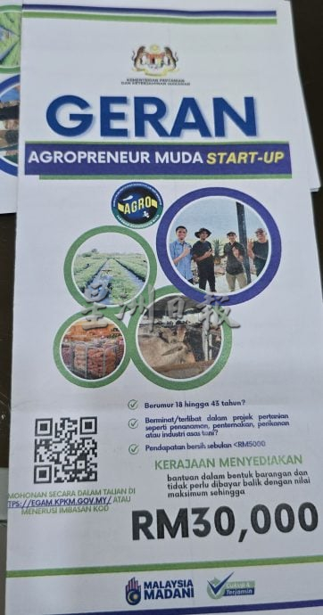 他补充,有关辅助金并非让年轻人申请来创业,申请者必须是已在农业领域耕耘,拥有园地,在附合申请条件之下,才会获得批准。