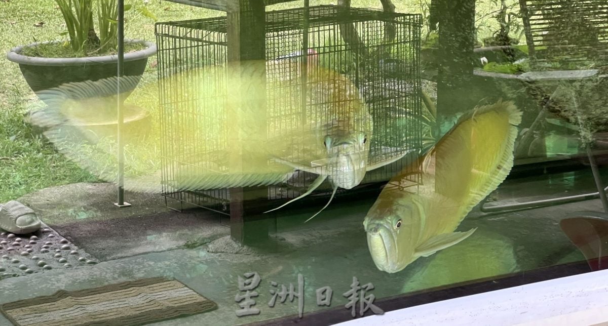 除了种植果树,两夫妇同时照顾着一个鱼塘,里头养着非洲鱼,住家也有数只巨大的龙鱼,非常有生命力;而且,他们的池塘不缺鱼,更加不缺送予亲戚朋友的爱。