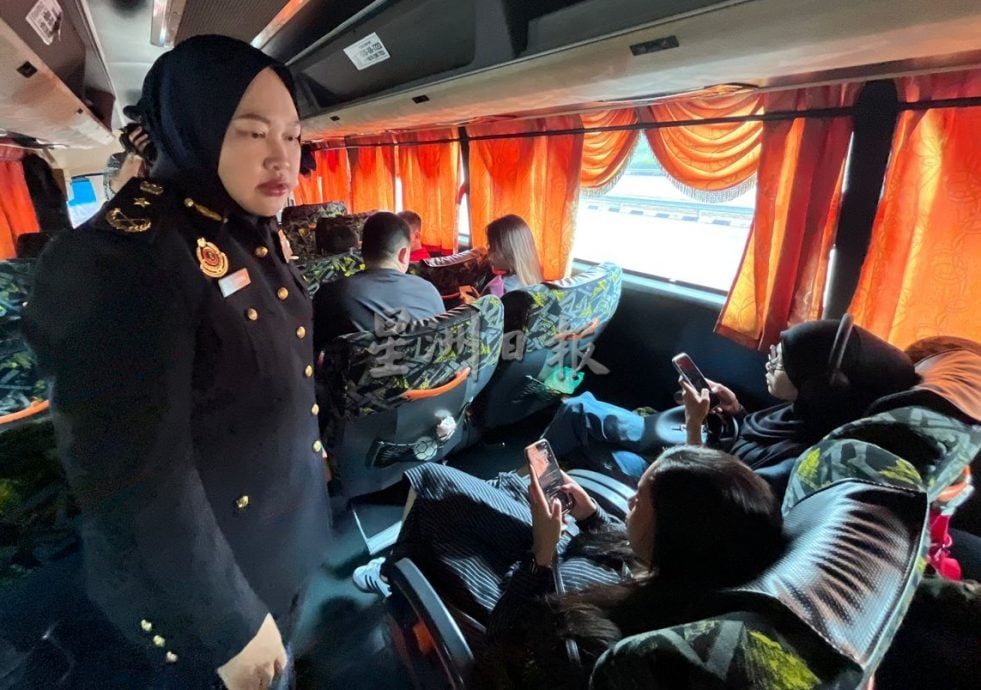 “与此同时,一辆旅游巴士因涉3项违规行为接罚单,包括没有第二司机、无法出示营运执照及相关服务准证。”