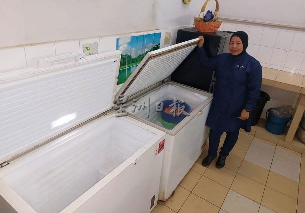 他说,厨房每日需烹煮40公斤的白米供收容者的两餐,目前食物库架上的罐头、厨房用品等已近清空,一个用来储放蔬菜的冰箱,已所剩无几,另两个用来储肉类的冰箱,一个已清空,一个只有少许肉类。