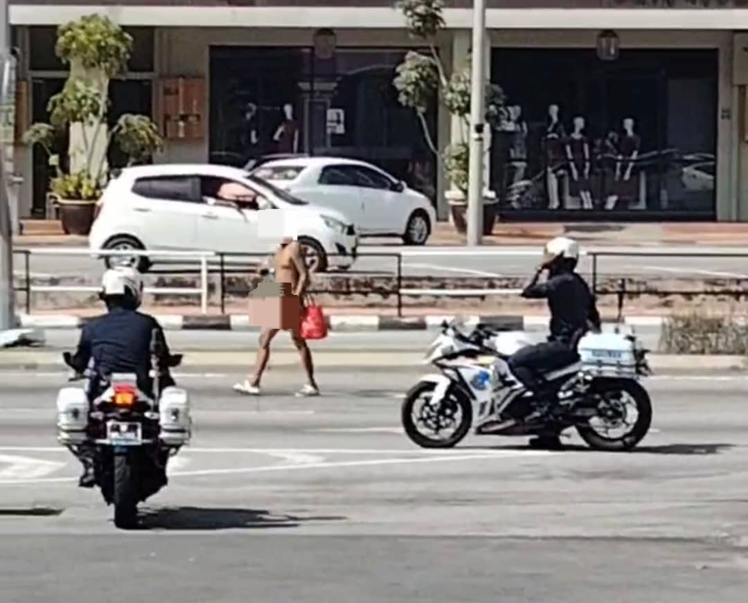 一名全裸的中年男子在哥打拉沙马那再也交通灯处处售卖纸巾,引起民众注意,警方随后赶到将裸男驱赶。