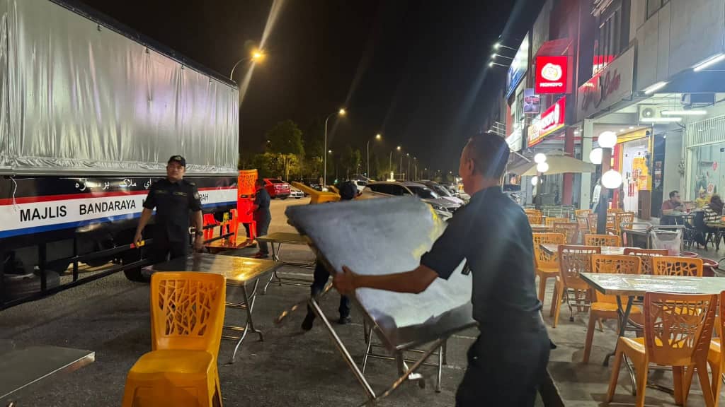 她说,这些商家都是因为在未向市政厅申请下,擅自将桌椅、盆栽等摆放在公共空间,例如五脚基、小巷等等,非法霸占公共空间行动。