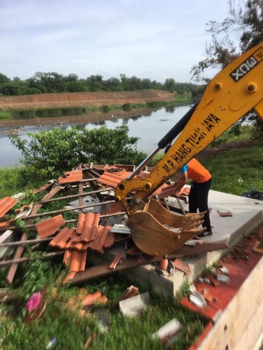 当局清理崩塌的凉亭。(邓永森提供)