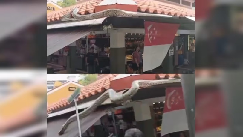 视频 | 狮城咖啡店惊现大蟒蛇 民众擒拿装袋