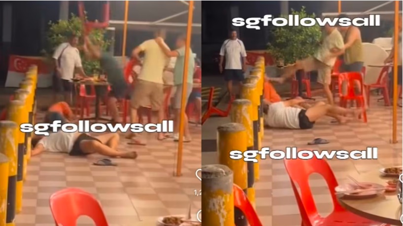 4名男子疑似起争执,其中两名男子在咖啡店拿椅子砸向另外两名男子,后者被打倒躺地,两名男子依然没有住手,继续用椅子往他们身上砸,直到旁人过来制止。