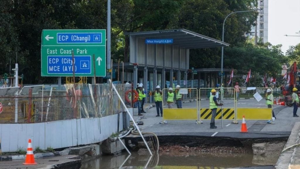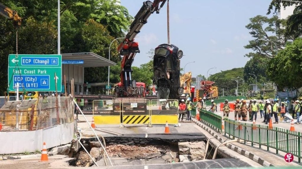 狮城路陷 | 丹戎加东地陷初步调查 狮城公用局:毗邻阴沟工程发生意外牵连