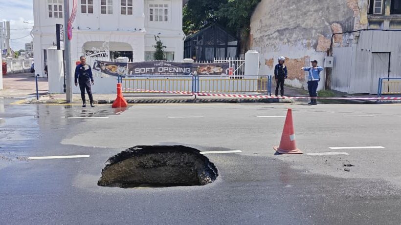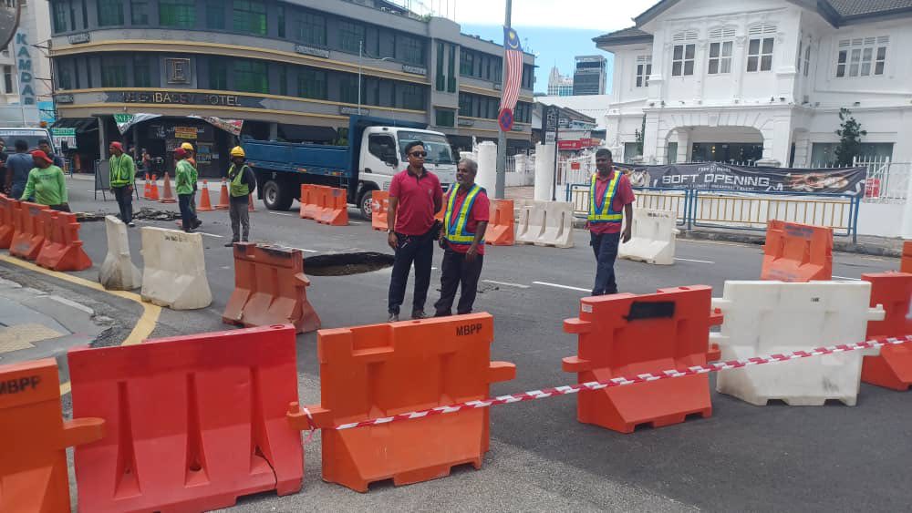车水路今早突发地陷,槟岛市政厅指出,是英达丽水(IWK)污水管破裂导致此事。