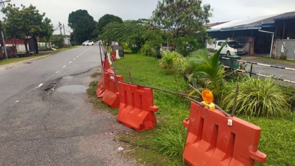 再也花园珍巴卡路(Jalan Cempaka)日前出现地陷问题,影响了道路、路肩、住宅围篱及附近排水沟的结构