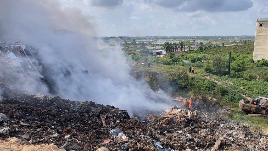 高渊楣南浮罗布隆第三期垃圾土埋场今早发生火灾,由于垃圾场底层火势蔓延,燃烧面积约0.6英亩,经过9小时灌救,成功将火势扑灭,没有造成人命伤亡