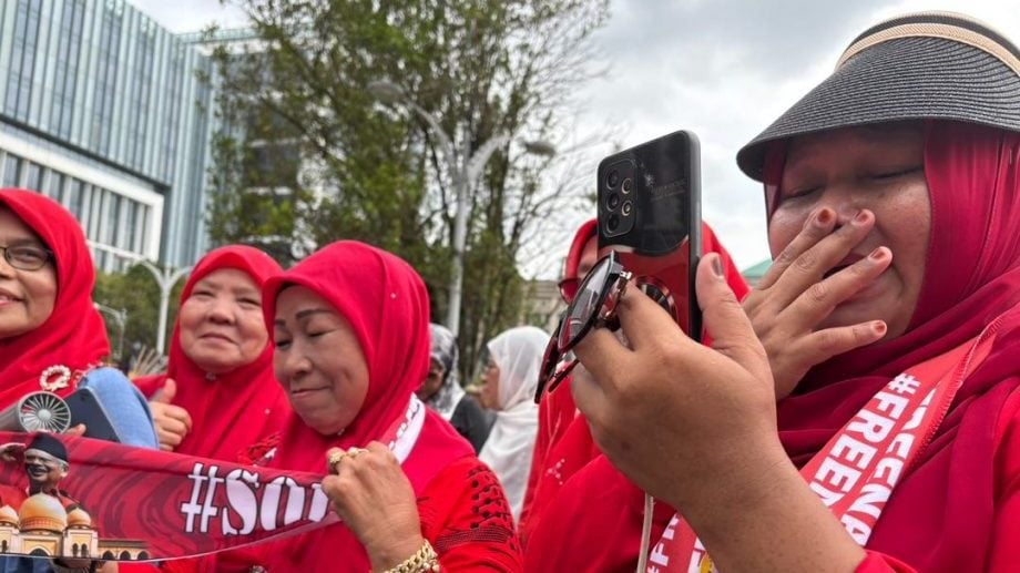 得知总检察署对前首相拿督斯里纳吉居家服刑申请司法检讨的上诉申请遭驳回,现场支持者瞬间情绪沸腾,有者甚至激动得热泪盈眶。