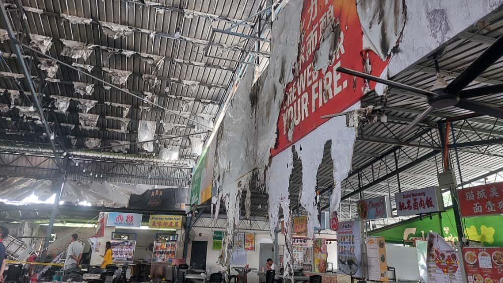 晋巷小贩中心遭火噬 数档口被烧毁