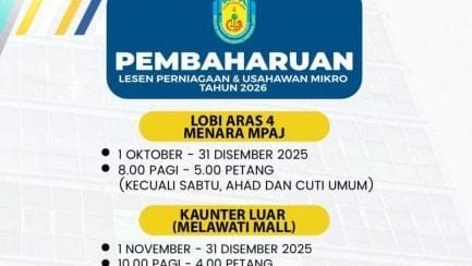 安邦再也市议会(MPAJ)的商业与微型企业营业执照更新柜台现已开放,市议会管辖范围内的商业执照持有人可于本月1日起至12月31日期间,前往办理更新执照手续。