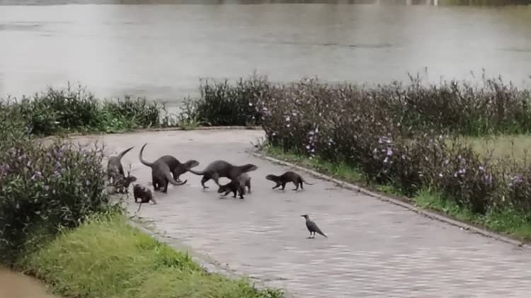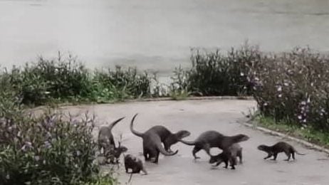 (新加坡6日讯)一名女子在新加坡加冷组屋区偶遇三只水獭,拍下视频放上网,网民纷纷警惕她躲远点,称水獭是“新加坡最大帮派”、“一堆活爹”、“法外狂徒”。 《8视界新闻网》报道,新加坡一名网民朱婉瑜在社交媒体小红书发布视频透露,她日前在一座组屋楼下看到三只“不明的生物”。 视频显示,三只体型非常大的水獭正在组屋楼下走动,并没有展现出攻击性。 她告诉《8视界新闻网》,她是在本月30日傍晚约5时56分,在新加坡加冷地铁站附近的一处组屋区看到这三只她从未见过的动物,因为是第一次看到,所以一时好奇拍了下来。 网民纷纷留言,告诉她那是水獭,还有人说它们是“新加坡最大帮派”、“一堆活爹”、“法外狂徒”。 有几名网民提醒她,若看到水獭,最好保持安全距离,因为水獭是会咬人的。有网民就分享,新加坡曾发生水獭攻击人的事件,甚至还把小孩子的手指头咬掉。 也有一些网民纷纷分享自己在新加坡各地看到水獭的照片。
