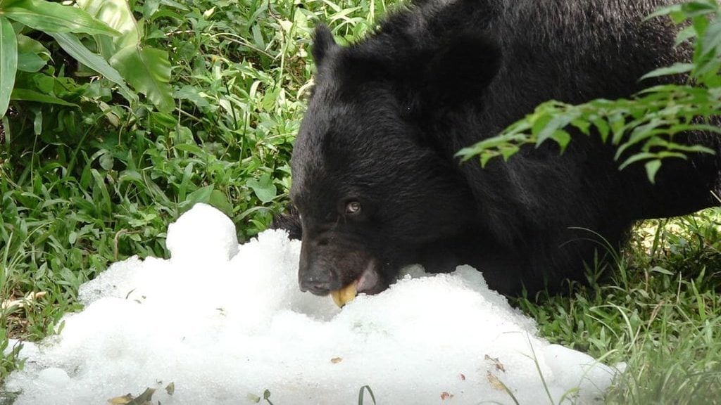 台湾天气持续炎热,台北市立动物园用尽心思替动物消暑,添购能制作碎冰的制冰机,提供小爪水獭包着鱼类的冰饭团、亚洲黑熊水果剉冰,降温同时丰富化动物行为,增添生活乐趣。