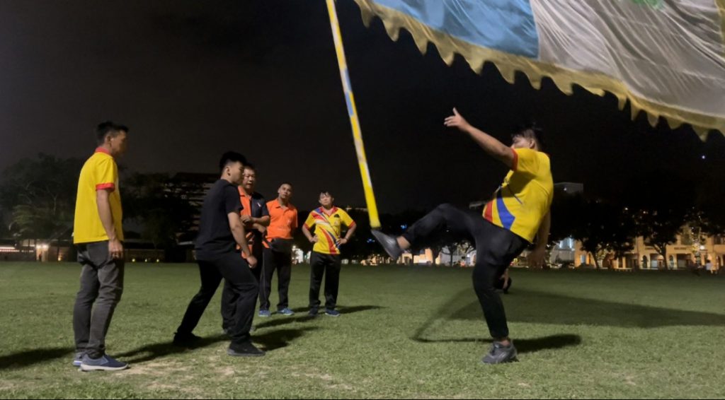 泉州武术教练李涛日前参加槟州大旗鼓公会组织的首届教练集训,如今已把技艺带到泉州轻工职业学院,在该院传授大旗鼓技艺。