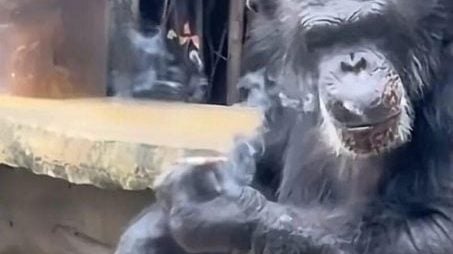 广西南宁动物园一只大猩猩手持香烟,坐在石头上吞云吐雾,有关视频传开后,顿时引发广大网民关注。