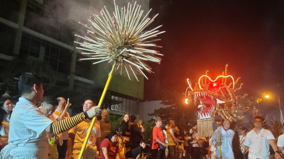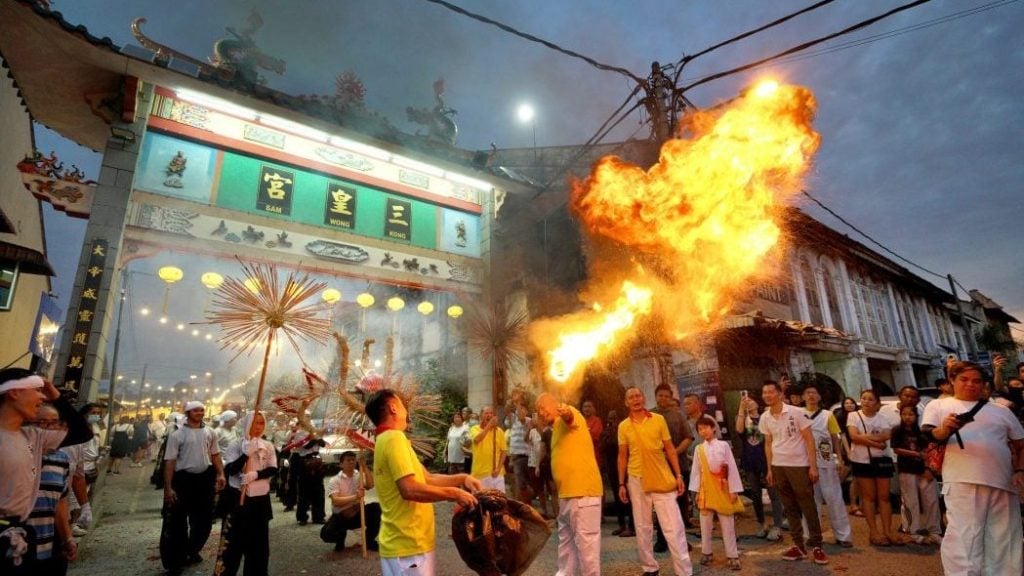 九皇大帝圣驾出巡游境 101尺香火龙亮相喷火