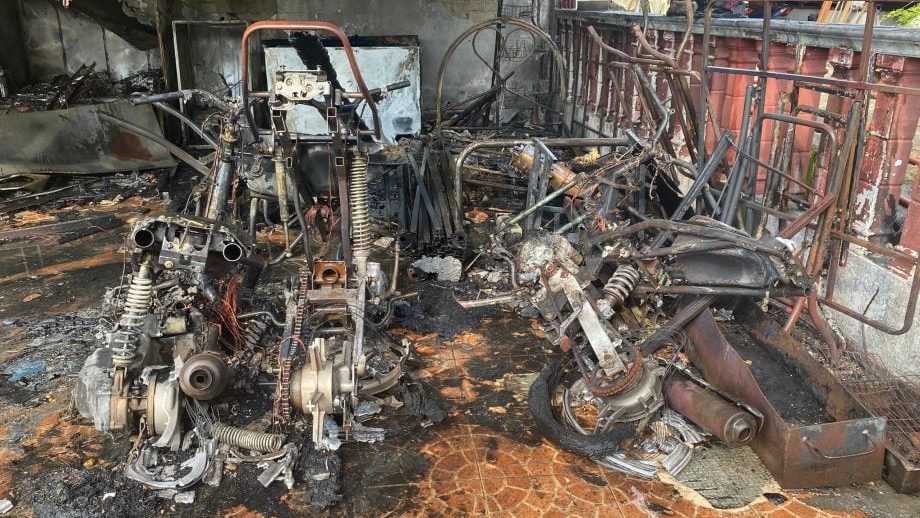(仕林河31日讯)地罗叻南垦殖区一间民宅今天下午起火,殃及四辆摩托车遭到不同程度烧毁,幸好无造成人命伤亡。 霹雳消拯局助理局长沙巴罗兹指出,该局时于今天下午4时零5分接获起火投报后,立刻派出仕林河消拯局和美罗消拯局的消拯队伍赶往现场,起火民宅距离消拯局20公里。 他说,该救火行动也获得仕林河新村志愿消防队的援助,而消拯队伍于下午4时27分抵达,一间B级民宅已被火势吞噬60%面积,没有民众受困。 他表示,行动队长指示消拯员穿戴完整的个人防护装备和呼吸器之后展开灭火行动,于下午4时36分控制火势。四辆遭殃及的摩托车当中,其中三辆90%损毁,另一辆则被烧毁10%。 他说,该次行动共动员15人,出动各一辆轻型消拯车、FRT消拯车和急救援消防车(EMRS),行动于下午5时30分结束。